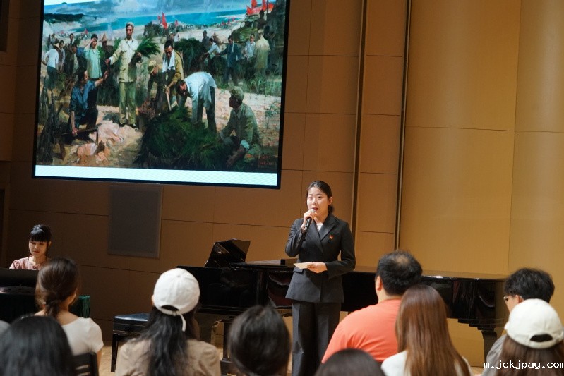 本次微党课的一大亮点是充分发挥了艺术专业的特色优势,用音乐和美术的形式生动诠释谷文昌精神。彭雅静同学演唱歌曲《梦圆》,以悠扬旋律再现东山如虹长堤,如黛青山的蜕变;何嘉伟同学献唱《唱支山歌给党听》,激昂歌声传递对党的赤诚;美术学院兰羽莹同学解读油画《绿色丰碑——人民好干部谷文昌》,通过画面中木麻黄新绿与质朴身影的对比,展现谷文昌平凡而伟大的一生。