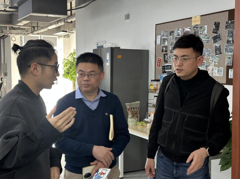 林映平副院长一行人员走访了基地科技成果展厅及福建姿言智能科技、福州易兆微电子等创新型企业,深入了解人工智能、集成电路等领域的产学研转化案例。在随后召开的座谈会上,双方围绕“创新创业创造研究方向”“项目孵化资源对接”等议题展开研讨。双方明确将强化协同,搭建项目合作桥梁,共同探索“产业需求+三创教育”融合的人才培养方案。