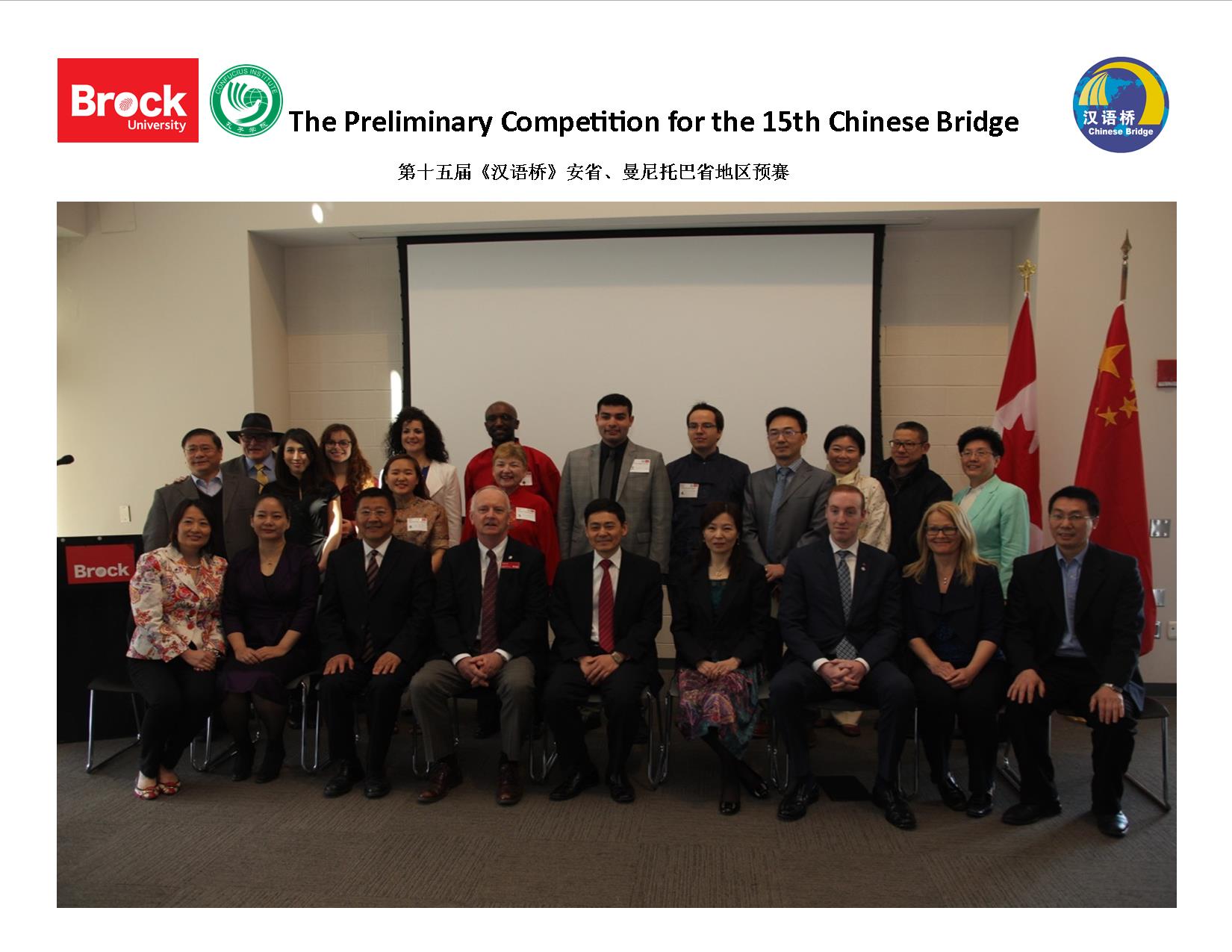 2016年4月24日,“汉语桥”大学生中文比赛安省赛区决赛在安大略省圣凯瑟琳市布鲁克大学孔子学院成功举行。中国驻多伦多总领馆薛冰总领事及夫人赵珺领事、教育参赞徐卫亚、王辉领事、布鲁克大大学副校长Brian Hutchings博士、副校长、孔院理事会主席Greg Finn博士、圣凯瑟琳市政府议员Mike Britton等人出席了活动并致词。比赛由布鲁克大学孔子学院主办,中国驻多伦多总领馆协办。省议员Jim Bradley、尼亚加拉地区议员Alan Calin、圣凯瑟琳市市长WalterSendzik、议员 Chris Bittle 等人发来了贺信。共有来自约克大学(York University),布鲁克大学(Brock University)、怀雅逊大学(Ryerson University)、特伦特大学(Trent University)等30多位同学和老师参加了此次活动。中国中央电视台、加拿大国际电视台等进行了全程录播。