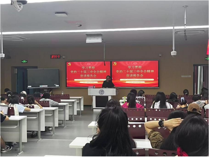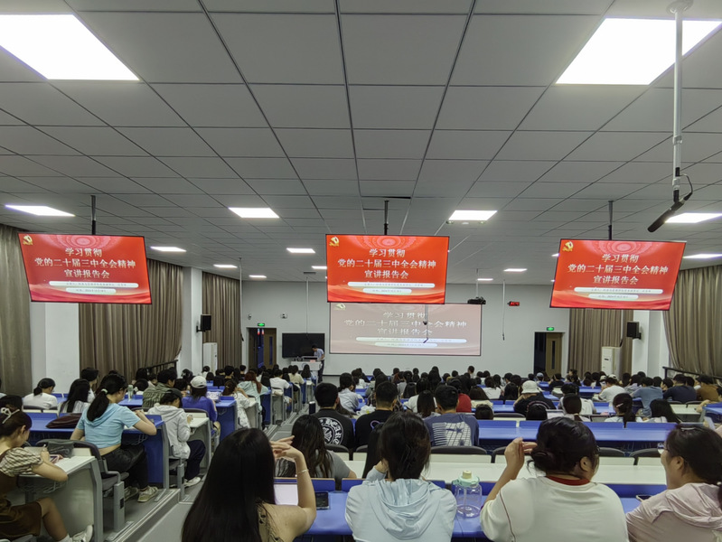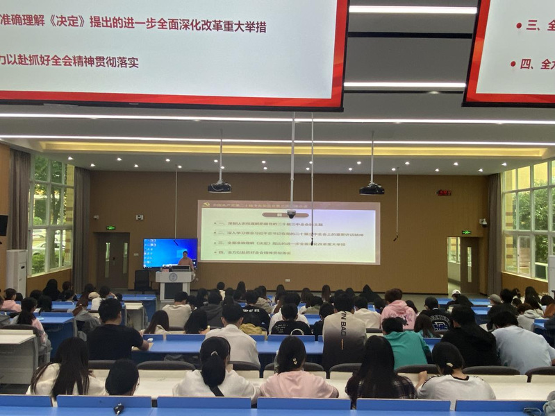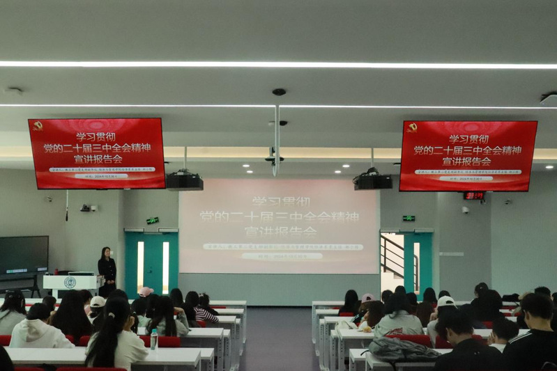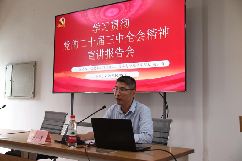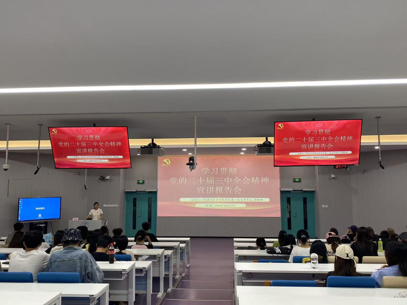 为深入学习宣传贯彻党的二十届三中全会精神,营造师生共同学习贯彻全会精神的浓厚氛围,经济与管理学院组建由院党委书记陈旭英担任组长,院党委委员、各党支部书记全员参加的学习贯彻党的二十届三中全会精神宣讲组,10月起面向全体师生分批宣讲,实现宣讲全覆盖。