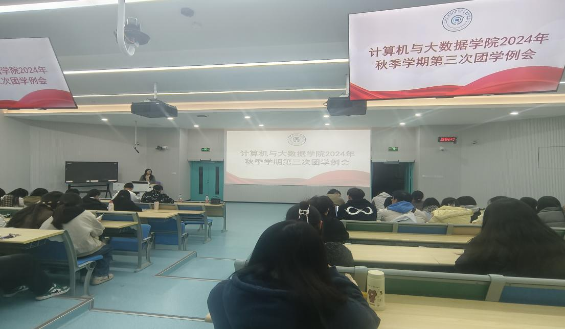 12月 19 日晚,计算机与大数据学院于教学楼 1B206 召开了本学期第三次两委干部例会暨学期工作总结会。本次会议由团委书记姚佳艺老师主持,全体辅导员以及两委学生干部参会。